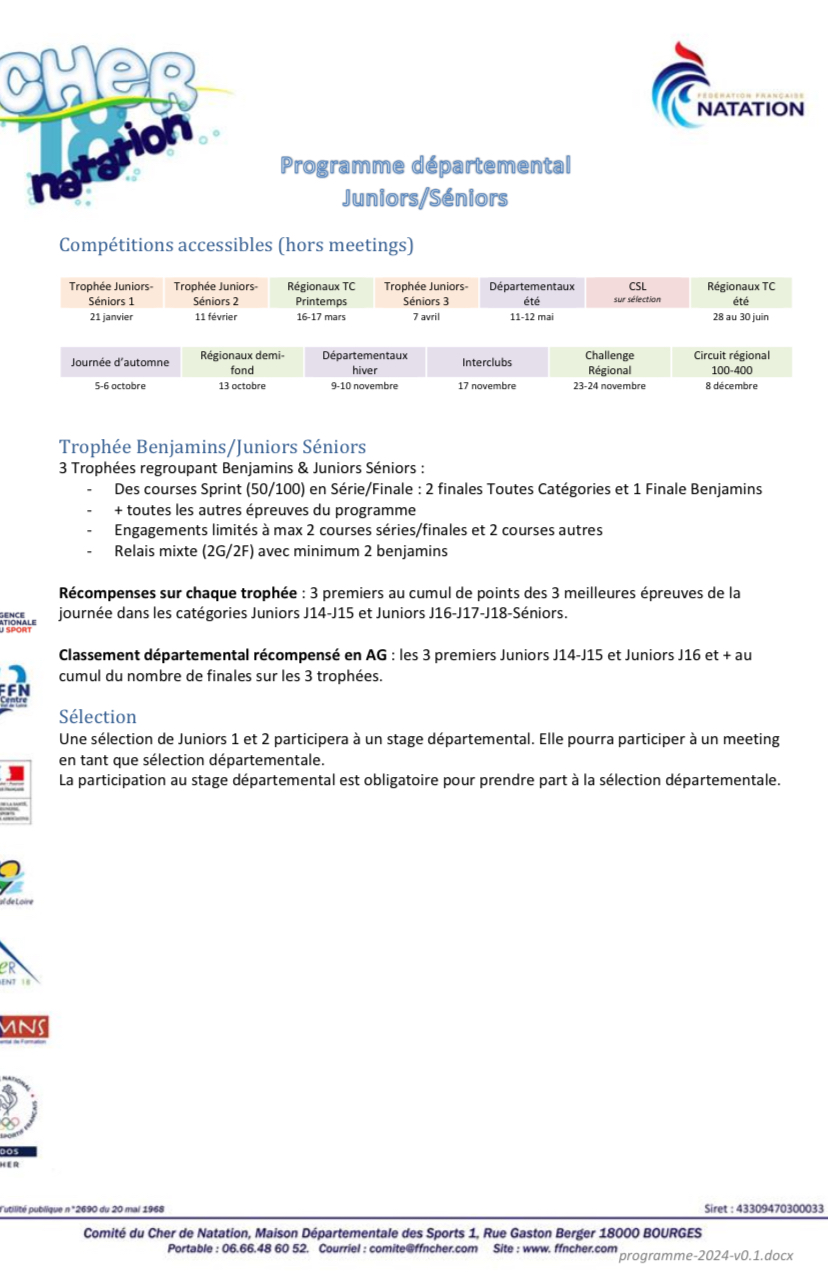 Programme départemental Juniors/Séniors