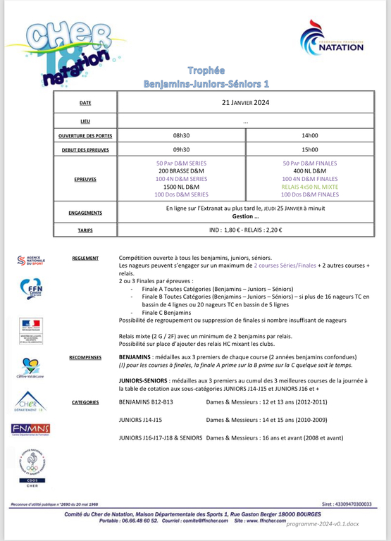 Je vous joint le programme de la journée ainsi que les différents programmes par catégorie. Tout le règlement y est expliqué.