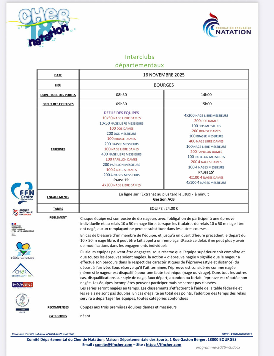 Compétition par équipe de 11 filles, 10+1 remplaçante