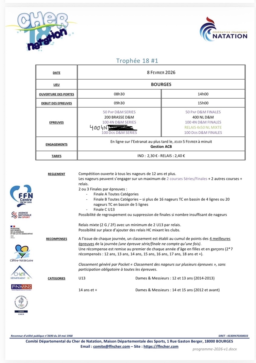 Rdv 7h25 Place du Mail pour un départ à 7h30 . Pour les personnes qui y vont directement à Bourges n'oubliez pas de le préciser (8h25 sur le parking de la piscine à Bourges)